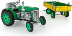 Ez az egyedülálló traktormodell egy kulccsal felhúzható rugós szerkezettel működik, ami autenticitást kölcsönöz a játéknak. A működő sebességváltó három előremeneti és egy hátrameneti fokozattal lehetővé teszi a gyermekeknek, hogy valósághűen játszanak a modellel. Kormánykerékkel vezethetik és használhatják a kéziféket a megálláshoz. Az 1:25 méretarány miatt ez a modell pontosan tükrözi a valódi traktor részleteit, így nemcsak remek játék, hanem gyűjtői darab is.