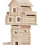 Sima, tartós elemek kb. 15 mm átmérővel a stabil építményekért és kellemes tapintási élményért. A természetes megjelenés kiemeli a valósághű „rönkház” hatást.