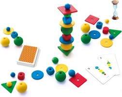 3 játékváltozat vár rád: verseny a megadott minta leggyorsabb felépítéséért, a lehető legmagasabb torony megépítése, valamint ügyességi mód a stabilitásra és egyensúlyra összpontosítva. A változatos elemkészletnek és a 16 mintakártyának köszönhetően minden parti más és érzelmekben gazdag.