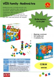 Szórakoztató családi játék 2–4 játékosnak 6 éves kortól, amelyben türelmedet, pontosságodat és ügyességedet teszteled. Építs tornyokat különböző alakú elemekből három versenyváltozatban, és élvezd a feszültséget és a nevetést. Tartsd meg az egyensúlyt, ameddig csak lehet – az nyer, aki a leggyorsabban megépíti a mintát vagy a legmagasabb stabil tornyot hozza létre.
