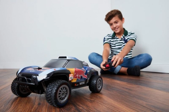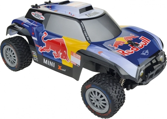 Stílusos RC modell, amelyet az X-Raid MINI JCW Buggy versenygép inspirált, ikonikus RED BULL matricázással, fürge és stabil menetteljesítménnyel. A modern 2,4 GHz-es frekvenciának köszönhetően gond nélkül versenyezhetsz barátaiddal egy pályán – jelkereszteződés és kimaradások nélkül.