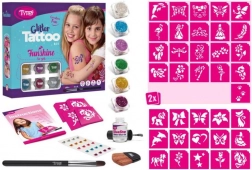 A nagyobb készletek több eszközt tartalmaznak: Mozgó szemek/öntapadós kövecskék: a kész mintát tovább díszítheted. Vigyél fel egy kis mennyiségű ragasztót az öntapadós kövecskékre, majd nyomd a bőrre.
