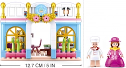 Aranyos, korabeli pékséget bemutató építőkészlet a Sluban Girl's Dream Village sorozatból, 199 elemmel, 2 mozgatható részekkel rendelkező figurával és rengeteg kiegészítővel a cukrászdás történetek alkotásához. A kockák minőségi ABS műanyagból készültek, a nehézségi szint közepes, és kompatibilisek a LEGO-, Cobi- és Mega Bloks-készletekkel – ideális a kreativitás fejlesztésére 6 éves kortól.