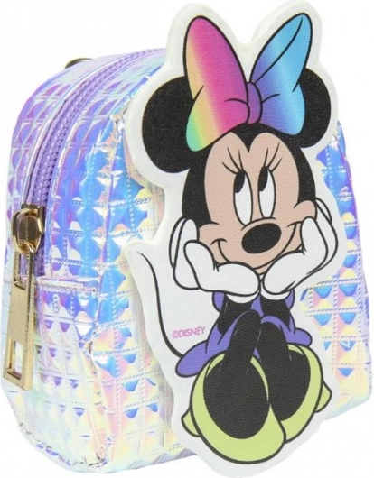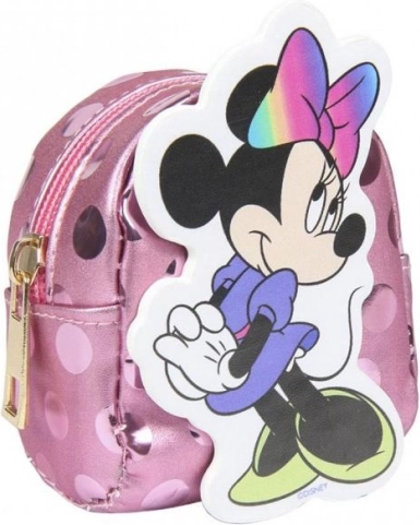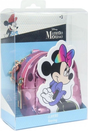 Játékos kulcstartó az ikonikus MINNIE MOUSE motívummal, amely ötvözi az aranyos dizájnt és a praktikumot. A mini hátizsák fényes felülettel és színes masnival kis tárolóhelyet kínál érméknek, fülhallgatónak vagy apró kincseknek. A cipzárnak köszönhetően minden biztonságban marad belül.