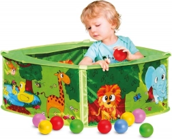 A színes medence számtalan játék lehetőséget kínál, ideális hosszú órákig tartó nevetéshez és készségek fejlesztéséhez.