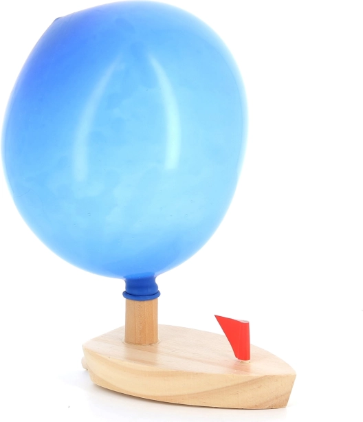 Hozd otthon játszadozás azzal a fa csónakkal léggömb meghajtással. A gyerekek könnyen felfújhatják a léggömböt, csatlakoztathatják a hajócskához, és figyelhetik, ahogy előrehalad. Ez az egyszerű, de hatékony dizájn tanítja a gyerekeket a mozgás elvéről, miközben szórakoztatja őket. Ideális játék a fürdőkád vagy a medence felett.