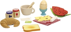 Lepd meg a gyerekeket játékos reggelivel a gyönyörűen kidolgozott VILAC készlettel. A csomagban találsz mártogatós tojást, pirítóst, sajtot, croissant-t, 2 lekvárt, egy csésze teát teafilterrel és görögdinnye szeleteket. Minden minőségi fából és filcből készült a tartósságért és az élethű megjelenésért.