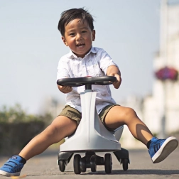 A szürke Didicar egy okos lábbal hajtós jármű, amely lánc, motor és elem nélkül mozog – elég a kormányt oldalról oldalra forgatni. Az alacsony súlypontnak, a kényelmes ülésnek és a stabil alapnak köszönhetően a haladás sima és biztonságos beltérben és kültéren, aszfalton vagy betonon egyaránt. Az európai és amerikai piacra szóló tanúsítás kiemeli a biztonságot és a minőséget.