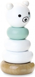 Ez az elegáns, fehér–menta színösszeállítású és natúr fa dekorú mackós rakosgató torony ideális első fejlesztő játék. A gyerekek gyakorolják a gyűrűk helyes sorrendjét, a méretkülönbségek felismerését és a mozdulatok ritmusát, miközben a finom színek és a mackó kedves arca kíváncsiságra és nyugodt játékra ösztönöz.
