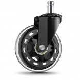 Univerzális, 76 mm átmérőjű gumikerék irodai, gamer és bárszékekhez, amely csendes és egyenletes gördülést, padlóbarát használatot és egyszerű, szerszám nélküli szerelést biztosít. Az átlátszó és fekete elemek elegánsan kiegészítik munkahelye megjelenését.