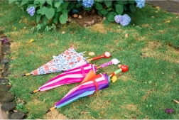 Az esernyő masszív fém vázra épül, ergonomikus fa fogantyúval rendelkezik, és a kicsi kezek számára is könnyű kinyitni és tartani. Körülbelül 75 cm-es átmérője megbízható fedést nyújt az eső ellen, anélkül hogy akadályozná a sétát.