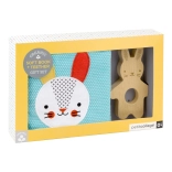 A nyuszi formájú rágóka európai bükkfából, FSC tanúsítvánnyal rendelkezik, ami biztosítja a környezetbarát felhasználást. A dizájnja lehetővé teszi a könnyű fogást a kicsi kezek számára.