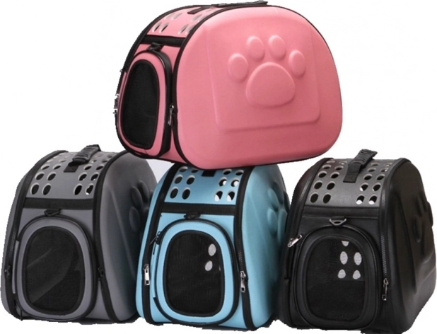 Könnyű és strapabíró EVA habból készült szállítótáska kis kutyáknak, macskáknak és más kedvenceknek 6 kg-ig. Biztosítja a masszív védelmet, a kiváló szellőzést, a cipzáras, könnyű hozzáférést és a kényelmes hordozást a levehető vállpántnak és az ergonomikus fogantyúnak köszönhetően. Összecsukható kialakítása helytakarékos tárolást biztosít.