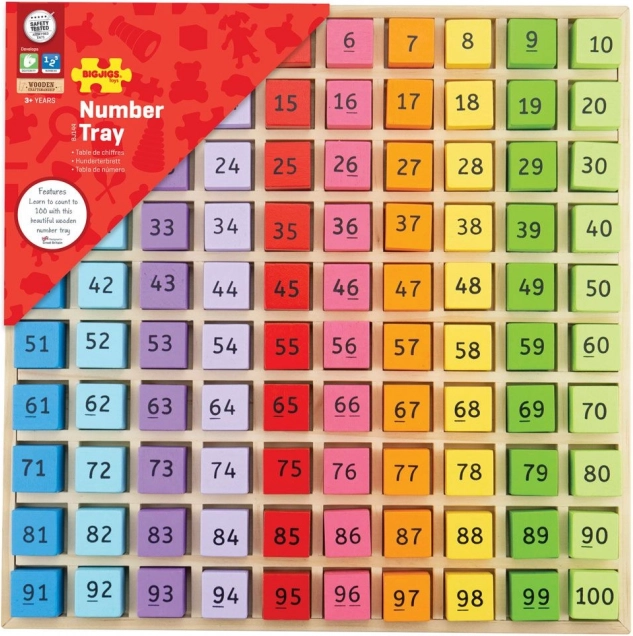 A Bigjigs Toys szórakozást és oktatást kínál fa számokkal a tárolóban. Ez a játék 3 éves kortól ajánlott, és ideális a számlálási képességek fejlesztésére. 100 darabot tartalmaz, 1-től 100-ig terjedő számokat, amelyek színben különböznek, így támogatják a számok és színek felismerését.
