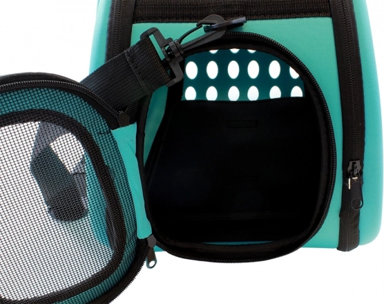 A szellőzőnyílások rendszere és az elülső hálós ablak folyamatos friss levegő-áramlást és kényelmet biztosít az állatnak az egész út során.