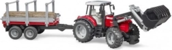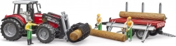 A BRUDER készlet az ikonikus MASSEY FERGUSON 7480 traktort hozza el homlokrakodóval és rönkszállítóval a maximálisan valósághű játékért. Az olyan működő részleteknek köszönhetően, mint a nyitható motorháztető, a kormányozható első tengely és a puha gumik, a gyerekek könnyedén megbirkóznak a rönkök rakodásával és szállításával.