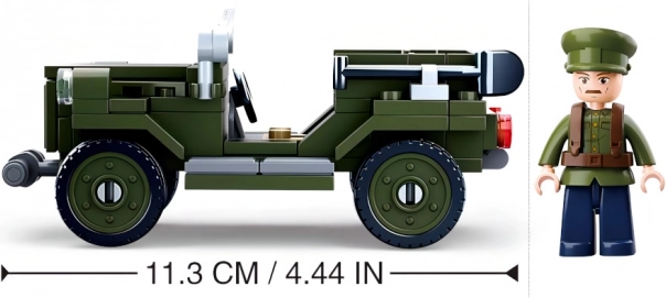 A készlet 111 darabot és egy katonai egyenruhás figurát tartalmaz, ami részletes és valósághű modell létrehozását teszi lehetővé.