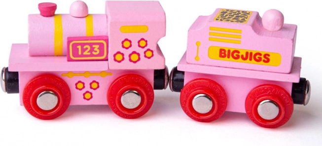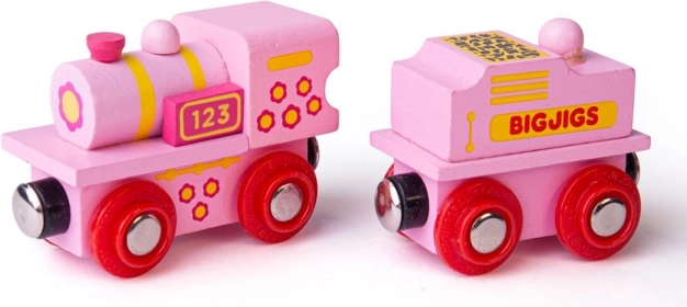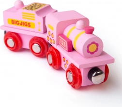 A bájos, rózsaszín mozdony tendervagonnal a BIGJIGS-től ideális első vonat fa vasút rendszerekhez. A mágneses kapcsolóknak köszönhetően könnyedén csatlakoztathat további vagonokat, és a legtöbb fa vonatpályával kompatibilis a piacon. Minőségi fából készült, megfelel az európai biztonsági szabványoknak, és támogatja a gyerekek képzeletét, finommotorikáját és koordinációját.