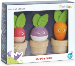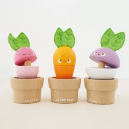 Ez az edukatív játék három virágcserépből és mosolygós zöldségekből áll, amelyek már 18 hónapos kortól elbűvölik a kis kertészeket. Minden elem a gyerekkezekhez igazodik, és különféle formák, textúrák és színek felfedezésére ösztönöz. Az építős elvnek köszönhetően a gyerekek gyakorolják a koncentrációt, a logikát és a koordinációt.