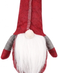 A piros árnyalatokban pompázó karácsonyi manó játékos megjelenésével – magas, hegyes sapka, puha fehér szakáll és csíkos lábacskák – igazán feltűnő, szezonális dekoráció. A minőségi filc és tartós műanyag kivitelnek köszönhetően könnyű, mégis masszív, és egész télen készen áll otthonod díszítésére.