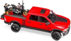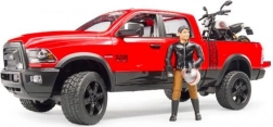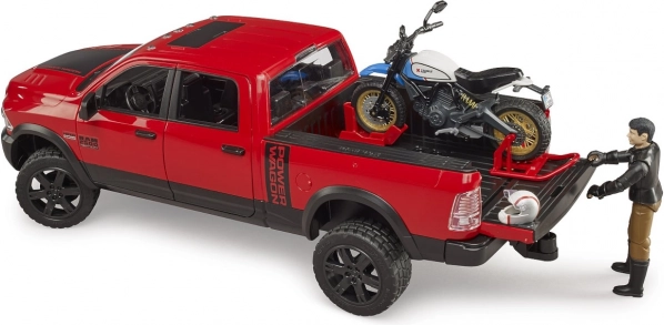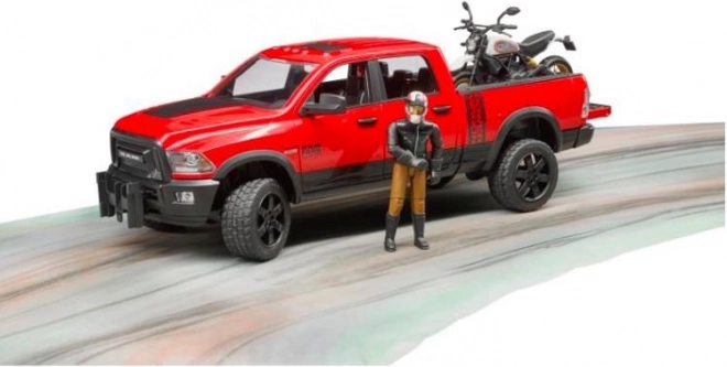- Ram pick‑up, Ducati Scrambler motorkerékpár, sofőrfigura