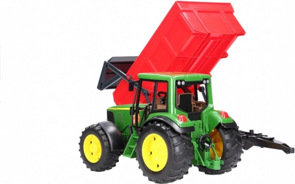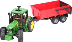 Valósághű szett kis farmereknek: a zöld JOHN DEERE traktor billenő platós pótkocsival rengeteg funkciót kínál az akciódús játékhoz. Nem hiányzik a nyitható motorháztető, a tetőn keresztüli kormányzás hosszabbított kormánnyal és a profilozott gumiabroncsok sem. A pótkocsi automatikus hátsó fallal rendelkezik a könnyű kirakodáshoz. Minőségi német kivitel tartós műanyagból, 1:16 méretarány.