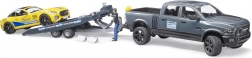 - RAM terepjáró pick-up, utánfutó, sárga sportautó, sofőr figura, kiegészítő kormány