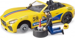 A 59-es rajtszámú sárga sportkocsi levehető tetővel versenyzős megjelenést és funkciókat hoz. Ideális szerviz- és versenyszcenáriókhoz.