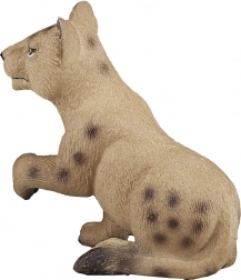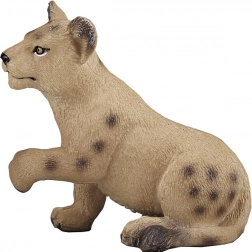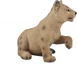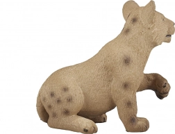 A figura természetes pózban ábrázolja az oroszlánkölyköt finom szőrtextúrával és az utánzott, a kölykökre jellemző foltokkal.