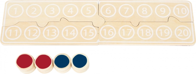 A színes korongok és az áttekinthető, 1–20-ig számozott tábla lehetővé teszik, hogy a gyerekek könnyen rakjanak ki feladatokat, és szemük előtt lássák az eredményeket.