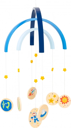 A Space kolotoč a kiságy fölé tökéletes kiegészítő minden gyerekszobába. **Ez a fából készült kolotoč segít elrepíteni gyermekeit az álmok világába a bolygókkal, űrhajósokkal, rakétákkal és más űrfigurákkal.**