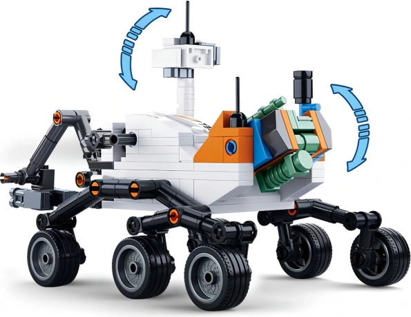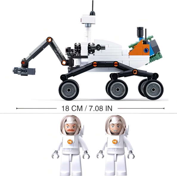 A rover mozgatható karjai és kerekei, valamint a pozicionálható figurák magával ragadó élményt nyújtanak.