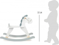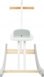 A klasszikus hintaló modern skandináv stílusban fehér és szürke színt kombinál, kényelmes, háttámlás üléssel és masszív fa szerkezettel. Ideális 2 éves kortól, támogatja az egyensúly fejlesztését, a koordinációt, és hosszan tartó szórakozást nyújt bármely gyerekszobában.