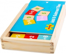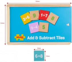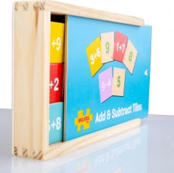 - Színes fa elemek az 1–9 közötti összeadáshoz és kivonáshoz, dobozban tárolva