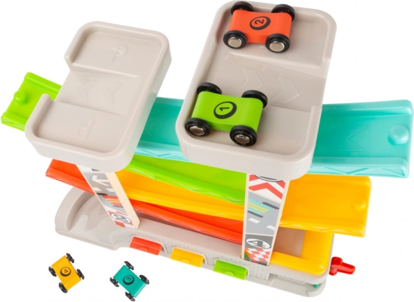 A versenypálya különböző szinteket és színes kisautókat tartalmaz, ami biztosítja a szórakoztató és oktatási játékélményt.