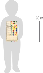 • Deszka és bábuk: A játék egy lyukakkal ellátott fa deszkából és különböző színkombinációkat kínáló színes bábukból áll.