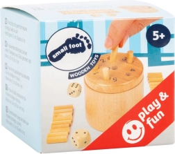 A Small foot Szuper hatos az egyszerű szabályok és az átgondolt taktika okos kombinációját nyújtja. A dobás eredményének megfelelően pálcikákat/peckéket helyezel a számozott nyílásokba, és igyekszel elsőként megszabadulni az összes saját darabodtól. A második dobókocka hozzáadásával még stratégiaibb változatot kapsz, amely minden körben próbára teszi a döntéseidet.