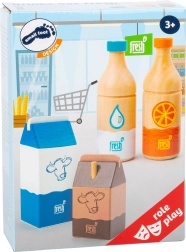 Biztosíts szórakoztató játékot gyermekednek ezzel a négy darabos ital készlettel, amely tartalmaz egy kanál narancslevet, egy üveg vizet, egy doboz friss tejet és egy kis kakaót szívószállal. Ez a készlet ideális konyhai vagy üzleti játékok szimulálásához.