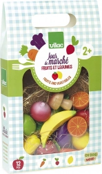 A VILAC minőségi készlete sokféle, kedvelt gyümölcsöt és zöldséget kínál a gyerekeknek. A fa kivitel filc kiegészítőkkel tartós, biztonságos és kellemes tapintású. Remek választás a gyerekkonyhába és a “piacra” is, támogatja a kommunikációt, a kreativitást és az egészséges táplálkozásról szóló tanulást.