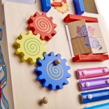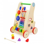 A fa járóka oktatási elemekkel ideális segítő a gyermek motorikus képességeinek fejlesztéséhez. Stabil támogatást nyújt az első lépéseknél, és inspirálja a tanulást és az érzékek fejlesztését.