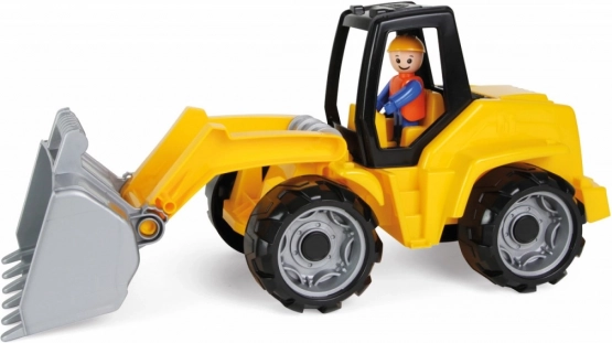 Ez a 44 cm hosszú gyermek építési rakodó rugalmas, kiváló minőségű műanyagból készült, amely megfelel az európai szabványoknak. Úgy tervezték, hogy a gyermekek valósághű jeleneteket élhessenek át játék közben, és fejlesszék motorikus képességeiket. A rakodó tartalmaz egy sofőr figurát és széles mozgási lehetőségeket kínál az emelhető kabin és az elforduló vödör révén.