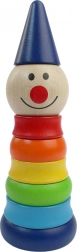 Ez a vidám, bohóc alakú fa piramis a cseh Detoa márkától ideális első kirakó 1 éves kortól. A hét színes karika és a sapkás fejecske egy masszív rúdra kerül, játékos bohóc megjelenést alkotva, ami újra és újra építésre ösztönzi a gyerekeket.