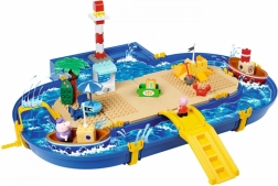 A gyönyörű Peppa Pig világ rengeteg lehetőséget kínál a kreatív játékhoz vízi témával. Ez a nagy vízi világ 47 különféle játékrészt foglal magában, beleértve hajókat és ismerős karaktereket a Peppa Pig animációs sorozatból. A következőket tartalmazza: