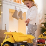 A billenős teherautó Power Worker alkalmas mind otthoni, mind kültéri használatra.