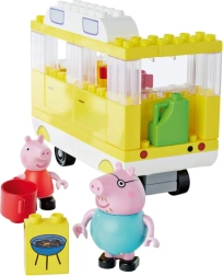 Indulj hétvégi kalandra Peppával és apukájával a kényelmes lakóautóban. A gyerekek kinyithatják az autót, berendezhetik az ülőrészt, főzhetnek a konyhában, teát készíthetnek és felállíthatják a grillt. A vidám színek, a nagy építőelemek és a bájos kiegészítők végtelen történetekre hívnak.