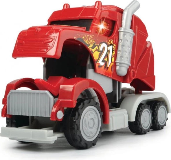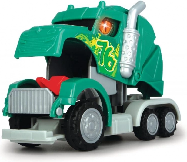 A vontató fülkéje egy pillanat alatt sárkánnyá alakul. Visszahúzós meghajtás, hangeffekttel és villogó fénnyel. 3 féle – piros, kék vagy zöld. Méret: 12,5 cm.
