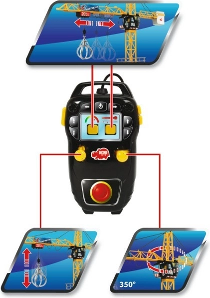 A mellékelt vezérlővel könnyedén felemelheted vagy leengedheted a csatlakoztatott terhet, és úgy irányíthatod a daru mozgásait, mint a valóságban.