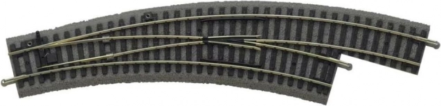 Váltó részletes faaljának részletező másolata kavicsos alapon, hiteles színekben. Kombinál egy pár 30°-os ívet, R3-t és R2-t, jobbra irányítva, kézzel vezérelhető.