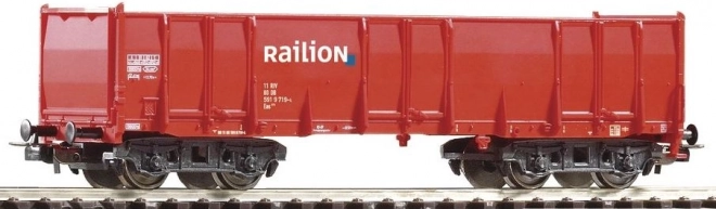 Részletesen kidolgozott, négytengelyes, magas oldalfalú Eas teherkocsi RAILION (DB AG) kivitelben ömlesztett anyagok szállításához. Kínál élethű H0 méretarányt, NEM 362 szerinti rövidkuplung-kinematikát és a PIKO márka minőségi kivitelezését a megbízható házi üzemhez.