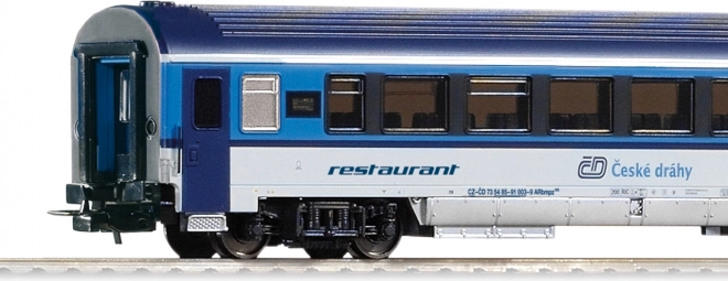 Az ARbmpz 1./2. osztályú étkezőkocsi RAILJET ČD kivitelű modellje hűen adja vissza a valódi szerelvények jelenlegi megjelenését és részleteit. Minőségi kidolgozásának és pontos arányainak köszönhetően kiválóan illeszkedik a modern cseh vonatszettekhez.